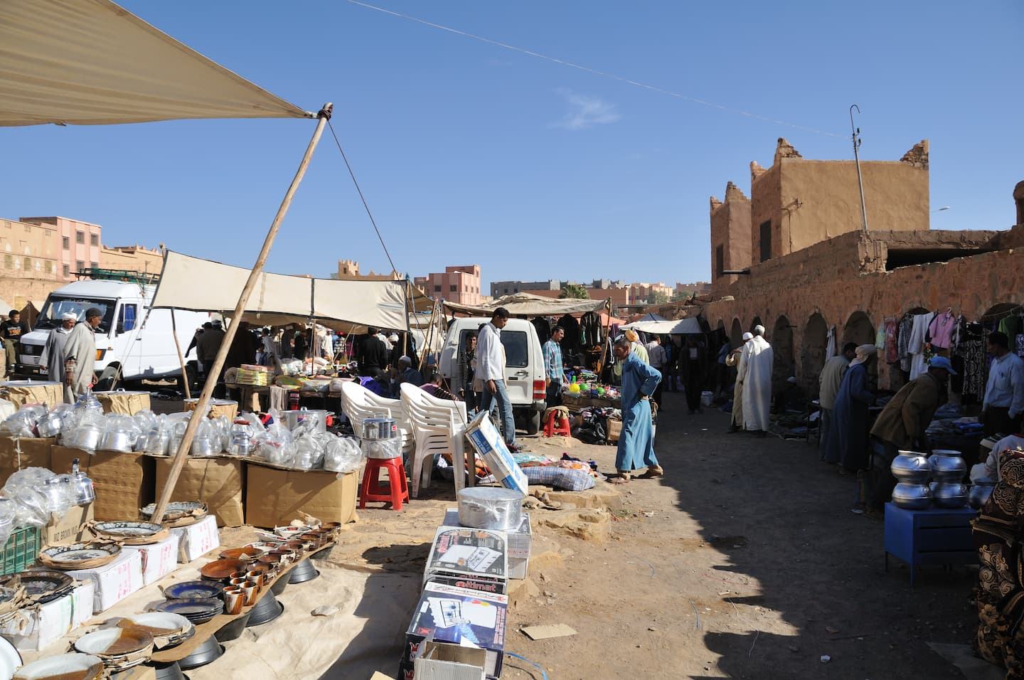 Après votre petit déjeuner, transfert en Minibus vers Ouarzazate, la capitale cinématographique du Maroc, en passant par le col de Tichka(2260m)un passage des caravaniers  partant de Marrakech vers le sud  par  Telouat ,située au cœur  du pays des glaouas ,Déjeuner à  Ourazazte ,puis continuation  sur le village Ait Youl (1350m), village berbère au cœur de la rose de Damas à Kelaa des M’gouna, rencontre avec votre équipe de muletiers, vous commencerez donc votre premier jour de marche ,traversée d’un paysage volcanique semi aride, arrivée à Tidkit (1600m) ,bivouac,3 h de  marche.D. positif : 250m.