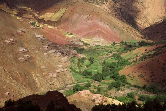 Transfert en Minibus vers le haut Atlas central, déjeuner à Azilal, l’après midi, continuation de votre transfert en passant par Tamda et par le col Ilissi, vous rejoindrez le village de Zaouiat Ahançal (1600m), rencontre avec l’équipe de muletiers, une marche tranquille d’environ 2 h vous mènera à votre bivouac au village de Taghia(1880m),bivouac .D- positif/320m.